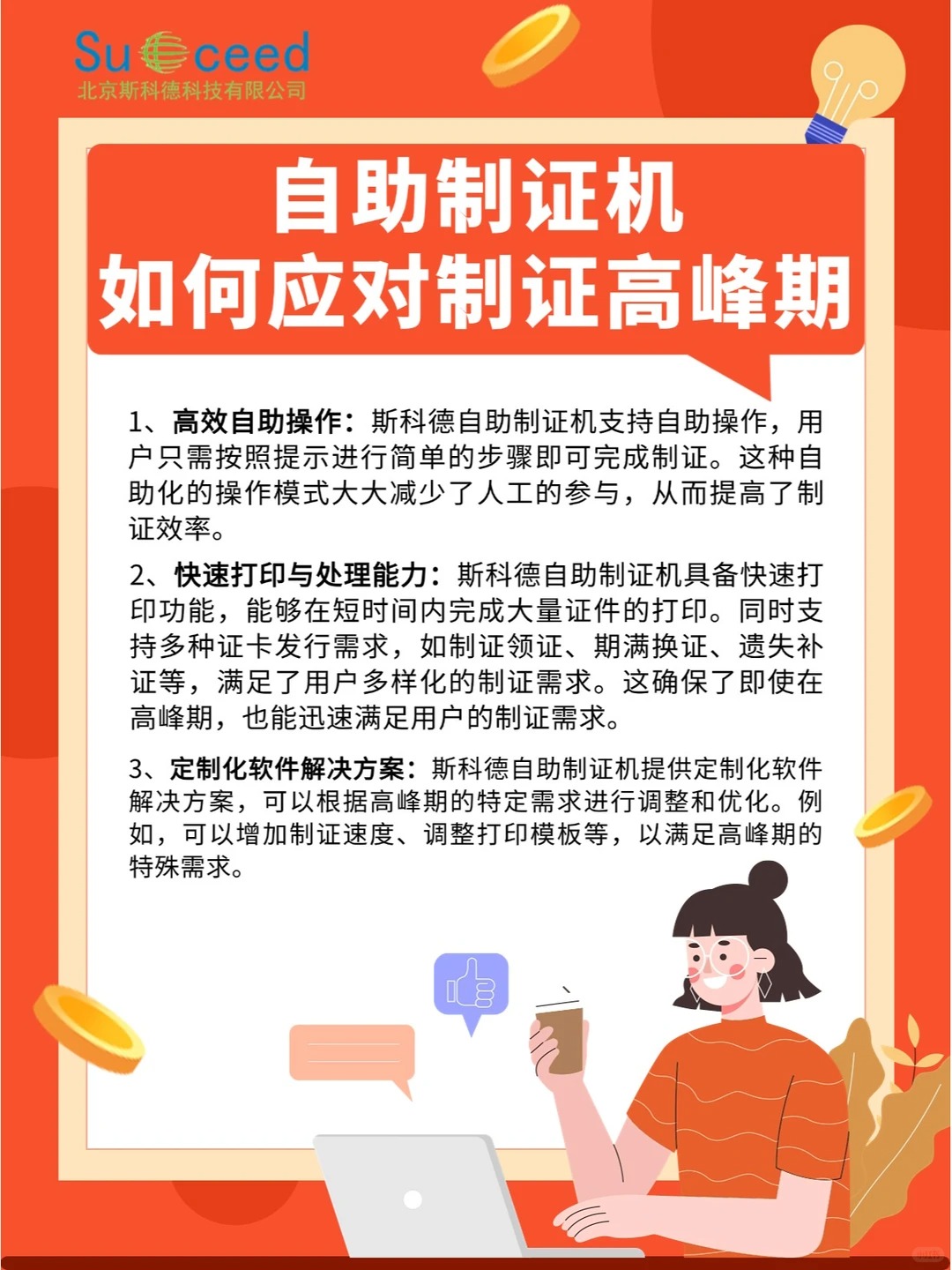 特种操作证规范全国统一,传统人工制证流程繁琐、周期长,难以满足时限要求,在“鼓励探索自助制证,推进信息系统和制证设备升级”的背景下,北京斯科德科技有限公司推出M806特种操作证自助制证机,成为政策落地的实操适配设备,既能契合“放管服”改革中提升政务服务效率的要求,也能通过技术手段强化证件管理的规范性与安全性。