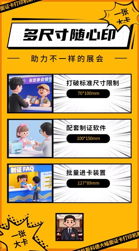 传统的标准卡尺寸工牌无法承载足够的创意,而市面上能打大卡的设备,操作繁琐,无法满足人事部门快速、批量制证的需求。